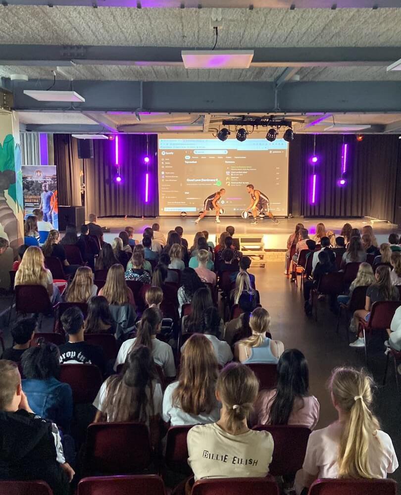 Gisteren vond de kick-off plaats van het project Alleen jij bepaalt (AJB) met een spetterend optreden van Showcase basketball Galdino Haimé en Just Lisa. Deze en volgende week krijgen alle brugklassers een basketbal- en voetbalclinic.