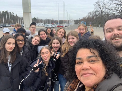 We hebben van alles gezien en ondernomen: een bezoek aan de voormalige grensovergang Mariënborg, een tour door de Reichstag, een indrukwekkende excursie naar concentratiekamp Sachsenhausen en het Olympisch stadion, een metrotour langs de highlights van de stad zoals de Potzdamerplatz, de East Side Gallery en Checkpoint Charlie. In de bioscoop hebben we met z’n allen genoten van de nieuwe Marvell-film. Natuurlijk kon de reis niet compleet zijn zonder een middagje souvenirs shoppen.