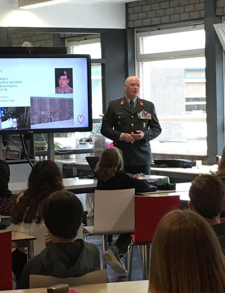 Eerder kwamen veteranen bij ons op school om te vertellen over defensie in het algemeen, opleidingen bij defensie en het belang van 4 en 5 mei. Onze filmcrew maakte hierover een item voor het Schooljournaal van april.